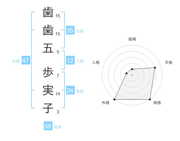 歯歯五 歩実子さんの外格は47画の5点!