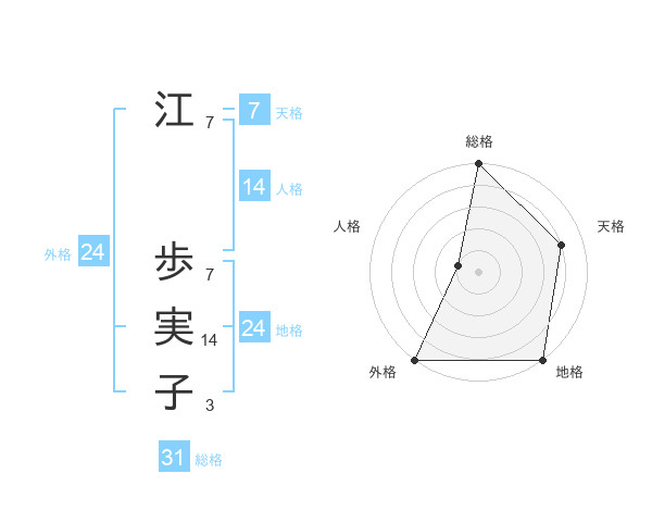 江 歩実子さんの総格は31画の5点!