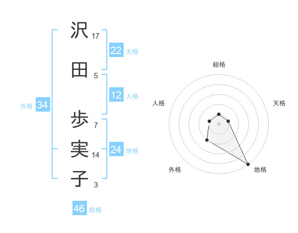 沢田 歩実子さんを姓名の画数から五運を鑑定