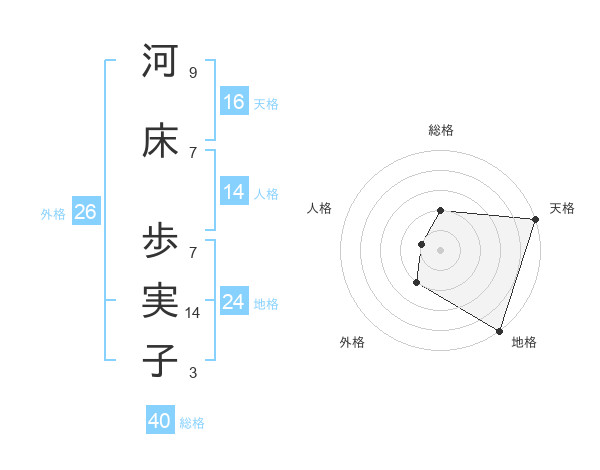 河床 歩実子さんの天格は16画の5点!