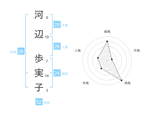 河辺 歩実子さんの外格は26画の2点!