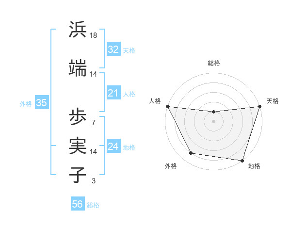 浜端 歩実子さんを姓名の画数から五運を鑑定