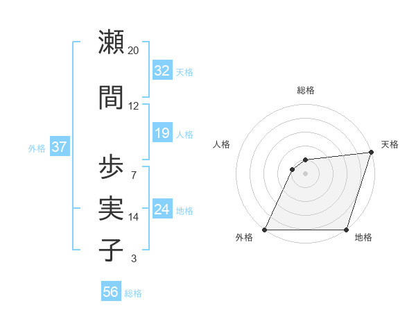 瀬間 歩実子さんの天格は32画の5点
