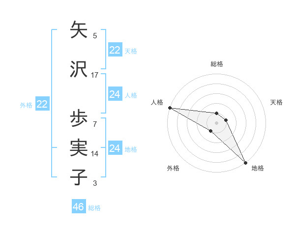 矢沢 歩実子さんを姓名の画数から五運を鑑定