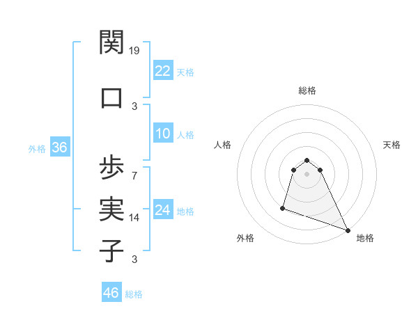 関口 歩実子さんを姓名の画数から五運を鑑定