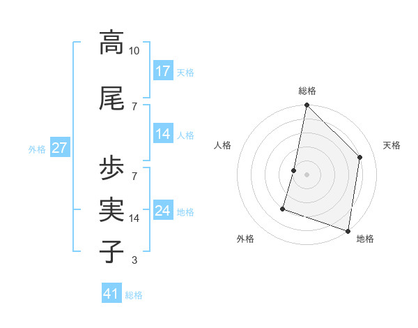 高尾 歩実子さんを姓名の画数から五運を鑑定