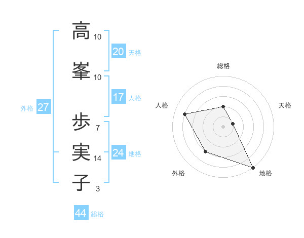 高峯 歩実子さんの総格は44画の2点!