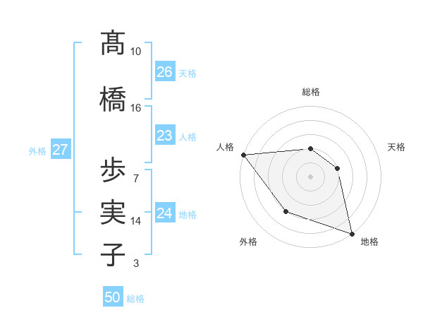 髙橋 歩実子さんの総格は50画の2点!