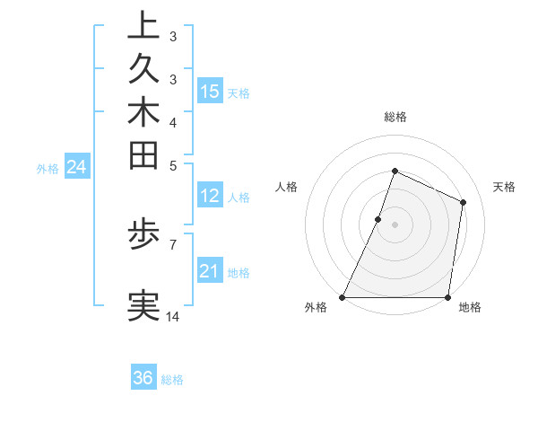 上久木田 歩実さんを姓名の画数から五運を鑑定