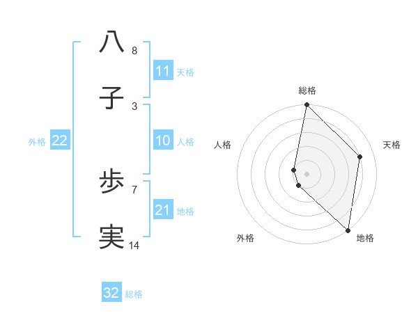八子 歩実さんの総格は32画の5点!