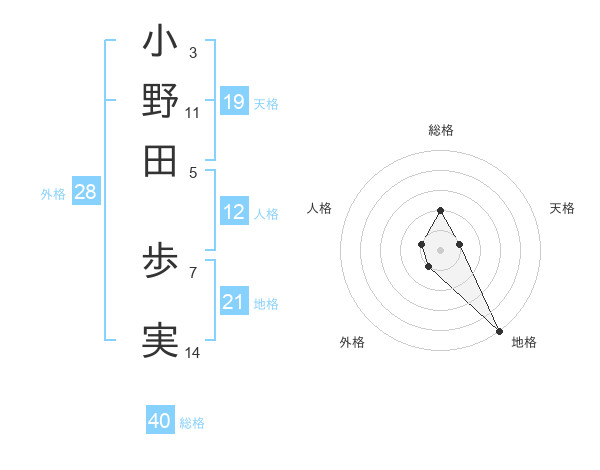小野田 歩実さんの天格は19画の1点!