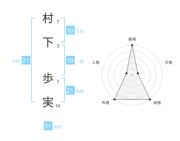 村下 歩実さんの総格は31画の5点!