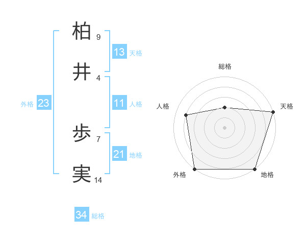 柏井 歩実さんの天格は13画の5点!