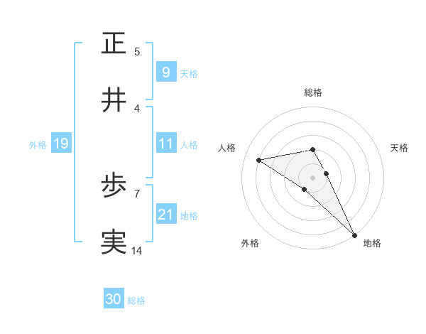 正井 歩実さんの地格は21画の5点!