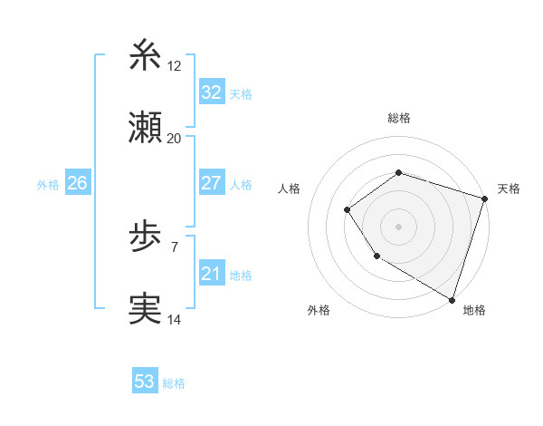 糸瀬 歩実さんを姓名の画数から五運を鑑定