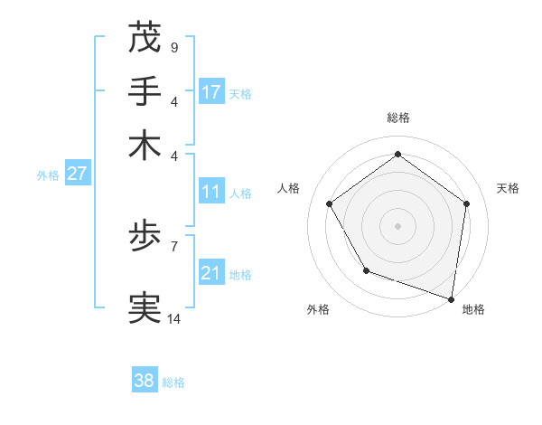 茂手木 歩実さんを姓名の画数から五運を鑑定