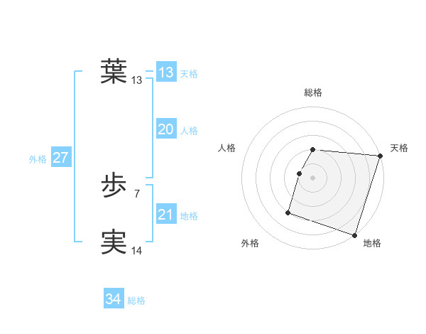 葉 歩実さんの総格は34画の2点!