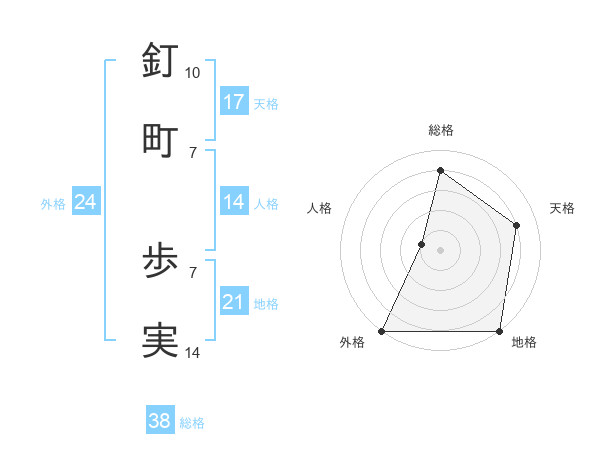 釘町 歩実さんの総格は38画の4点!