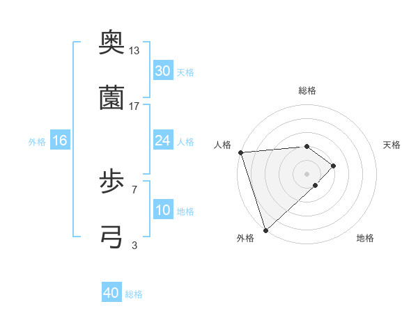 奥薗 歩弓さんの天格は30画の2点!
