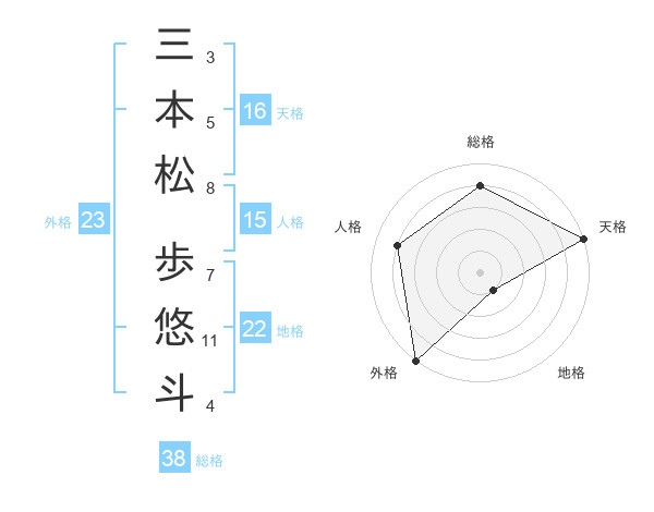 三本松 歩悠斗さんを姓名の画数から五運を鑑定
