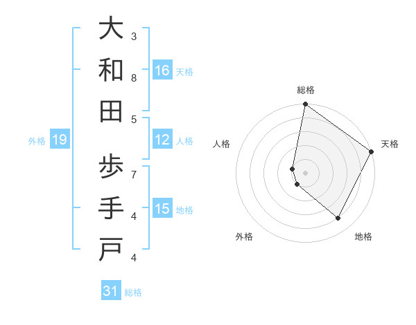 大和田 歩手戸さんの総格は31画の5点