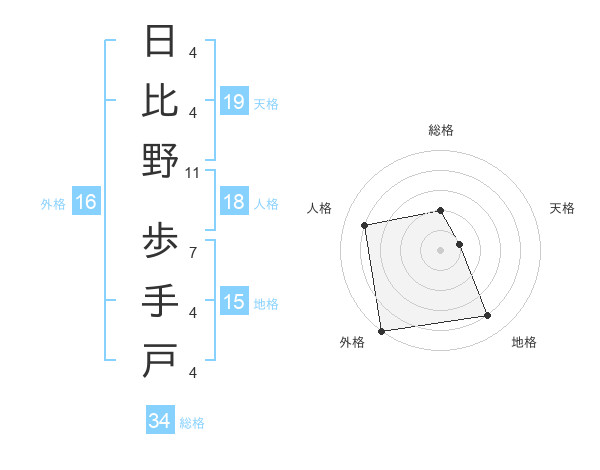 日比野 歩手戸さんを姓名の画数から五運を鑑定