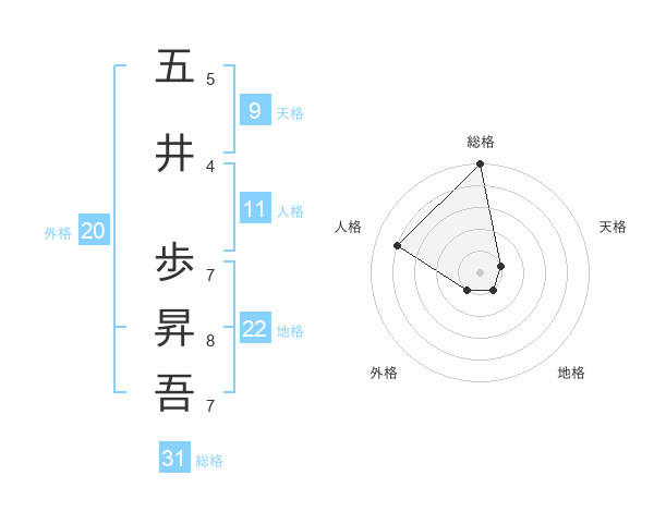 五井 歩昇吾さんの総格は31画の5点!