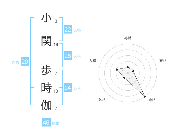 小関 歩時伽さんの総格は46画の1点