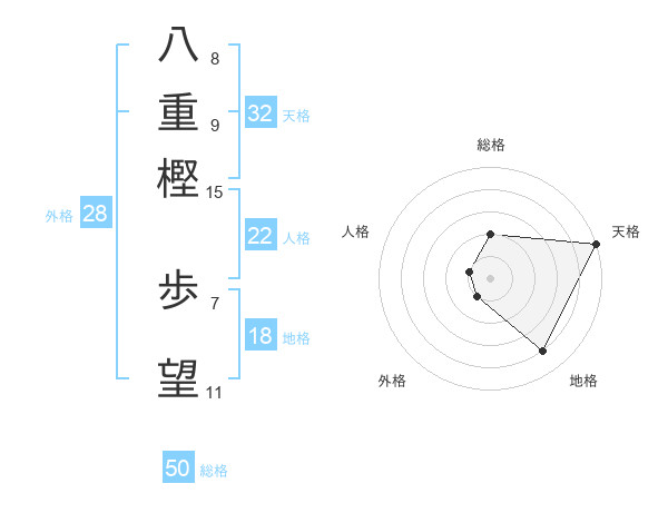 八重樫 歩望さんの総格は50画の2点!