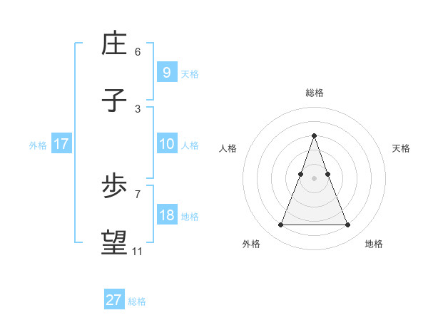 庄子 歩望さんの総格は27画の3点!