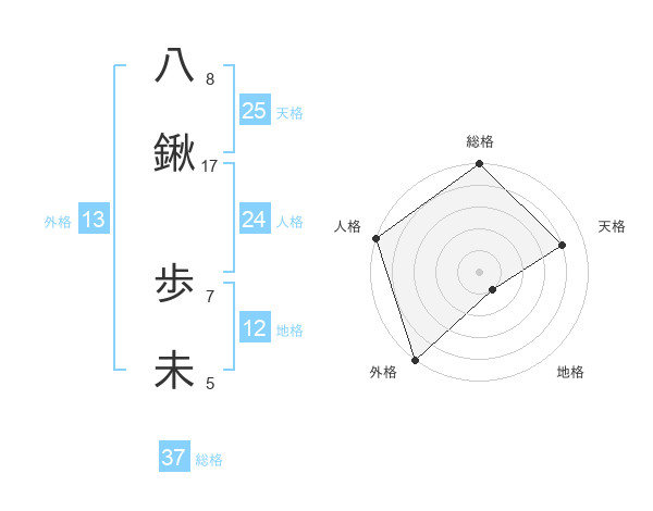 八鍬 歩未さんの地格は12画の1点!