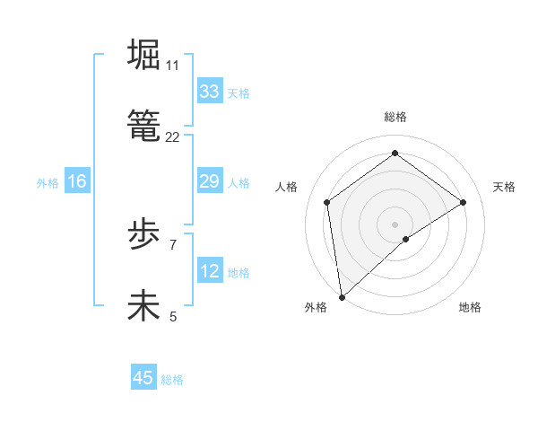 堀篭 歩未さんの総格は45画の4点!