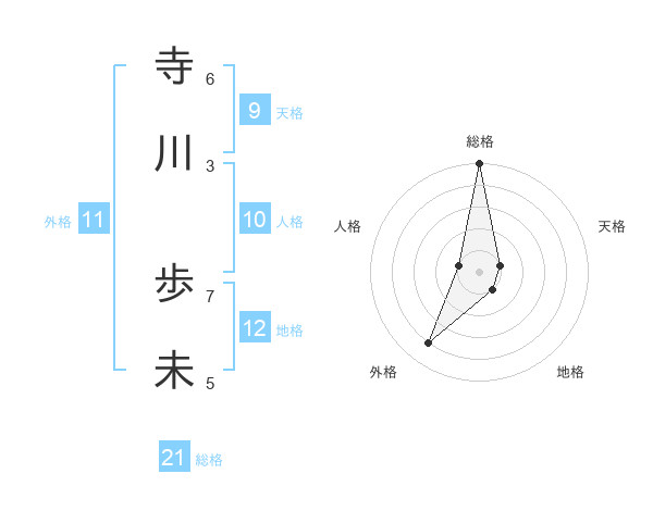 寺川 歩未さんを姓名の画数から五運を鑑定