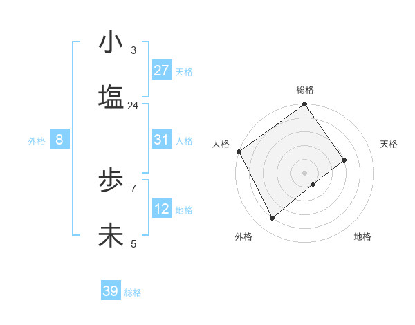 小塩 歩未さんの総格は39画の5点!