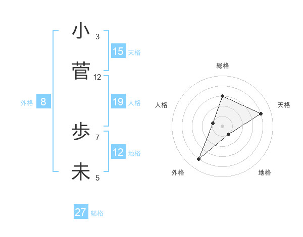 小菅 歩未さんの天格は15画の4点!