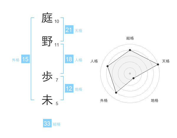 庭野 歩未さんを姓名の画数から五運を鑑定