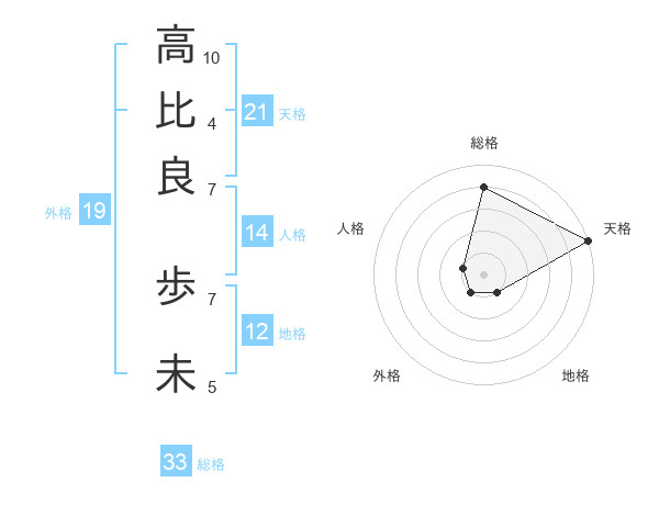 高比良 歩未さんの天格は21画の5点!