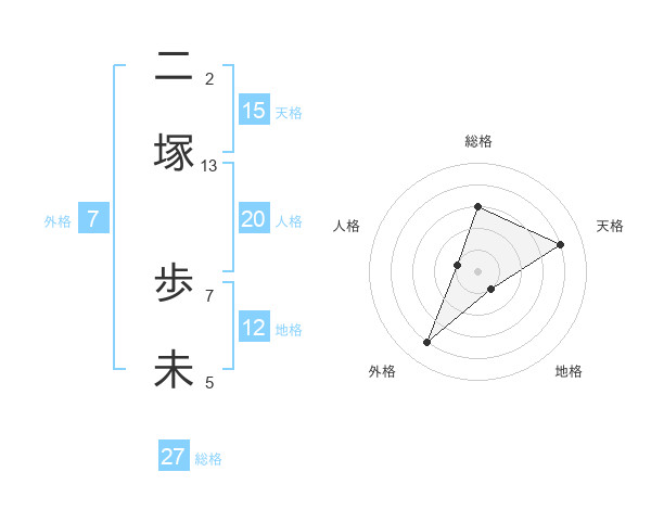 二塚 歩未さんを姓名の画数から五運を鑑定