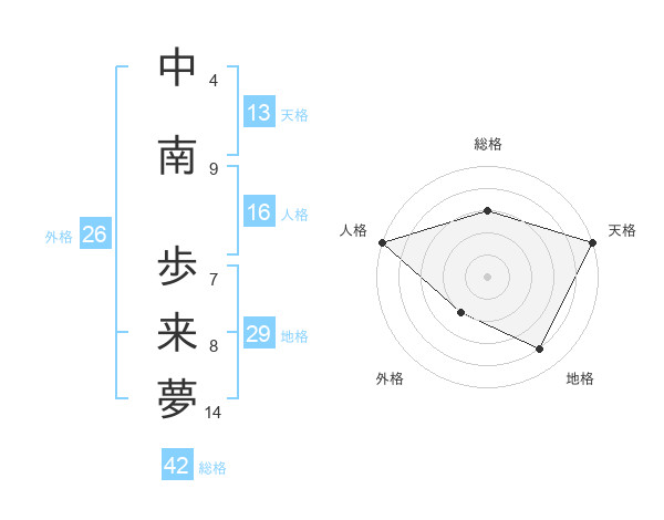 中南 歩来夢さんを姓名の画数から五運を鑑定