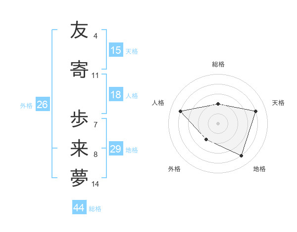 友寄 歩来夢さんを姓名の画数から五運を鑑定