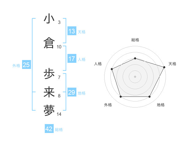 小倉 歩来夢さんの総格は42画の3点!