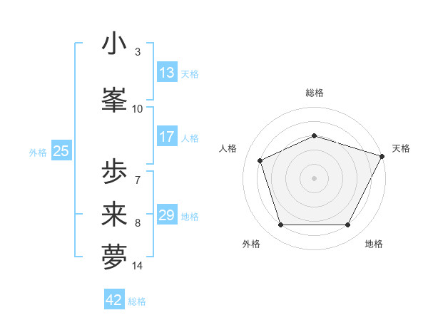 小峯 歩来夢さんを姓名の画数から五運を鑑定