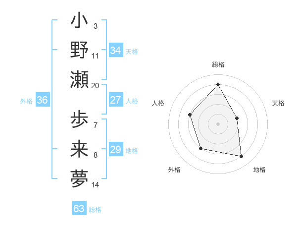 小野瀬 歩来夢さんを姓名の画数から五運を鑑定