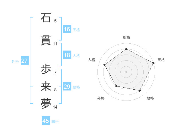 石貫 歩来夢さんの総格は45画の4点!