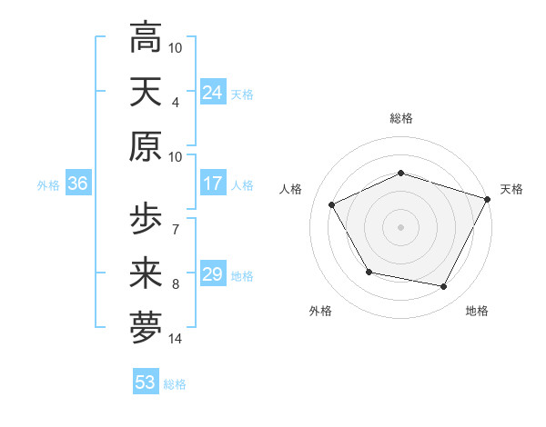 高天原 歩来夢さんを姓名の画数から五運を鑑定