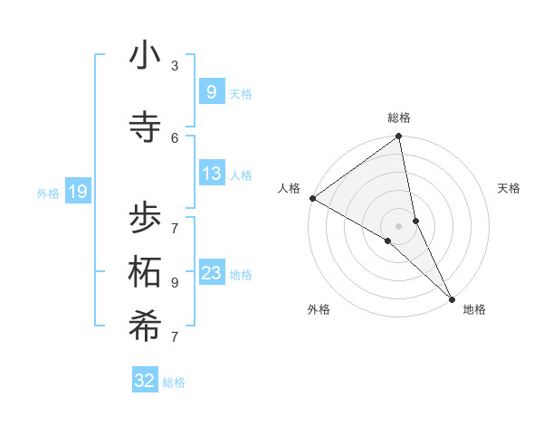 小寺 歩柘希さんの総格は32画の5点!