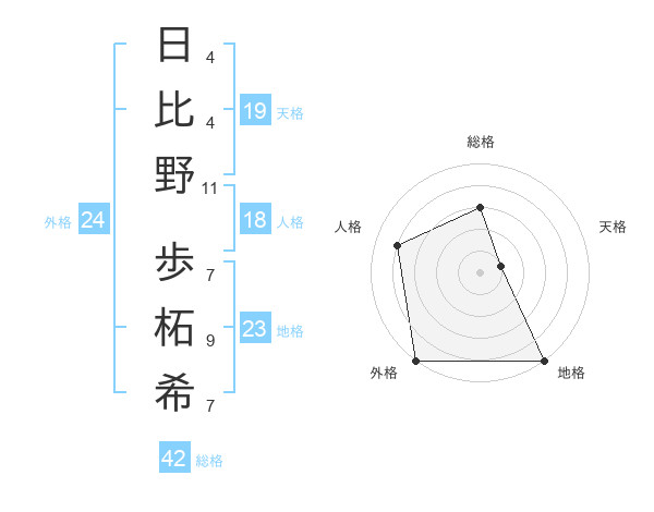 日比野 歩柘希さんを姓名の画数から五運を鑑定