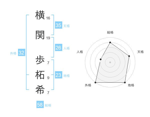横関 歩柘希さんを姓名の画数から五運を鑑定