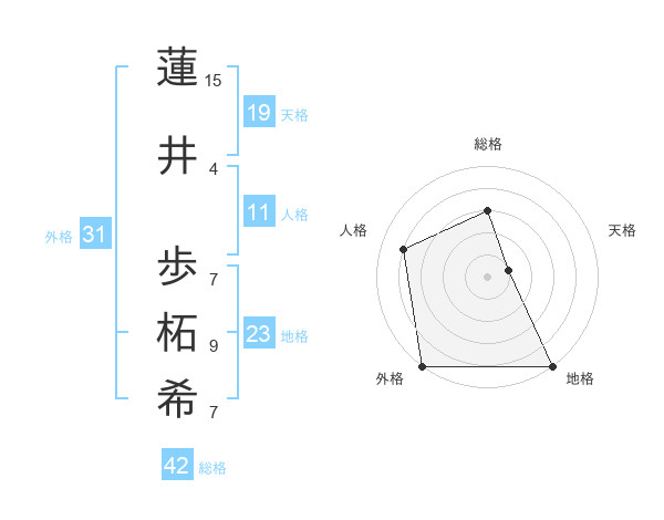 蓮井 歩柘希さんを姓名の画数から五運を鑑定