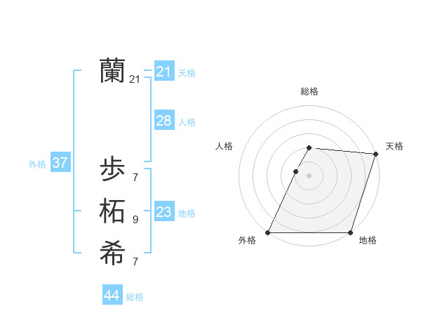 蘭 歩柘希さんの外格は37画の5点!